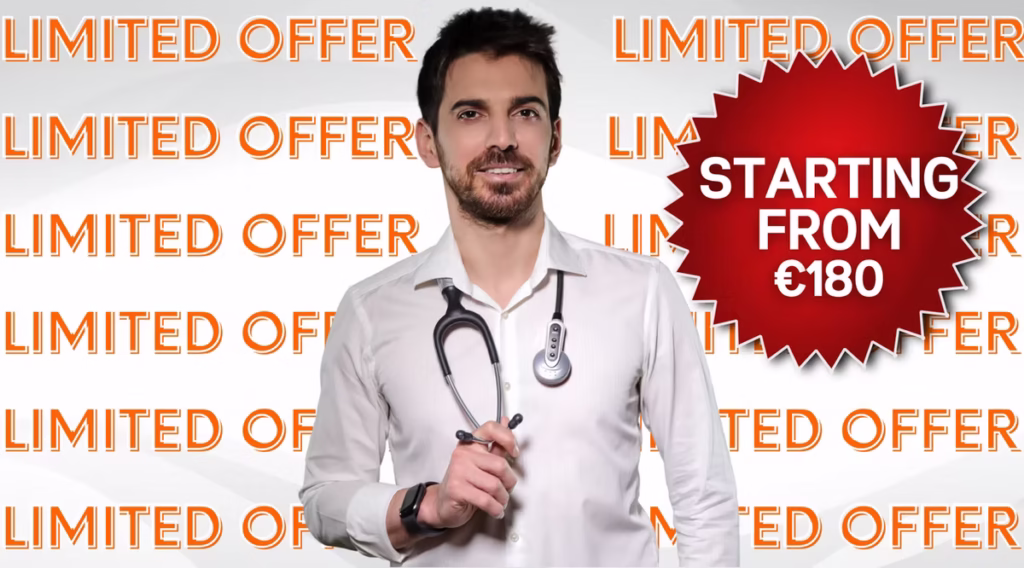 Non richiediamo alcun deposito anticipato. Il saldo totale si effettua in ospedale all’arrivo, con carta o contanti, come preferisci. Non offriamo piani di pagamento rateali.
